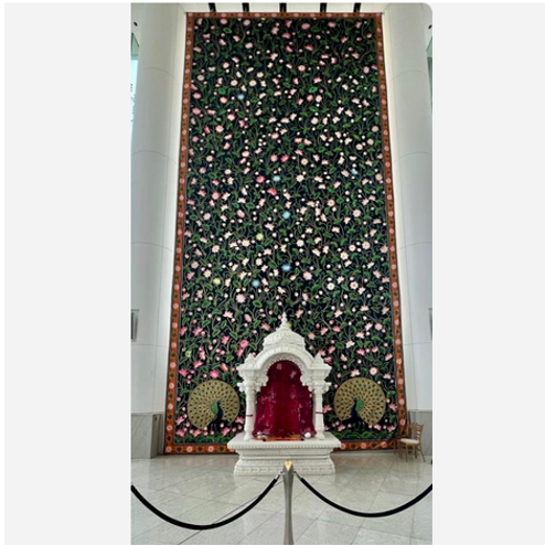 The wonder of the pichvai has crossed the sands of Rajasthan and found its way to the recently inaugurated Nita Mukesh Ambani Cultural Centre (NMACC) in Mumbai. Suresh speaks about one of the largest pichvai paintings that is currently at the centre — a sprawling 27 x 57 ft work of art that took eight months to make, replete with dancing peacocks and lotus flowers.
