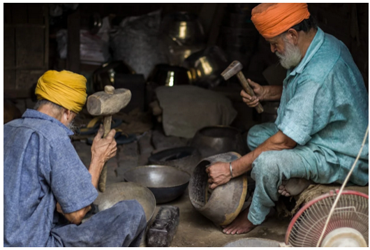 The numerous health benefits of using copper and brass vessels are well known. However, around 200 years ago, these were even more popular than today. It is said that the Thathera craft was established when skilled metal workers from Kashmir settled in Jandiala Guru, Punjab under the reign of Maharaja Ranjit Singh.