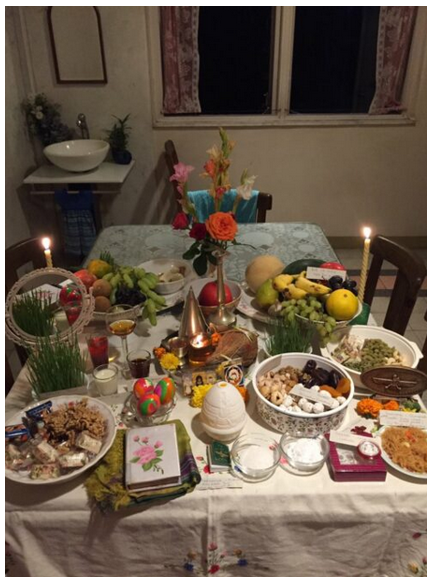 According to HJKRVSS, “The Spirit of Noon, known as Rapithwina, who was considered to be driven underground by the Spirit of Winter during the cold months, was welcomed back with celebrations at noon on the day of Nowruz according to Zoroastrian tradition.”
